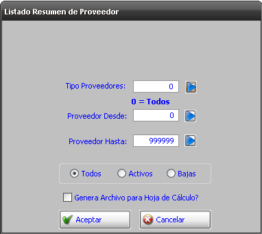Genera el listado de Proveedores, en el mismo se cuenta con todos los datos que se ingresaron en la Tabla, con opción de salida al Excel. Al acceder a esta opción se observa la siguiente imagen: