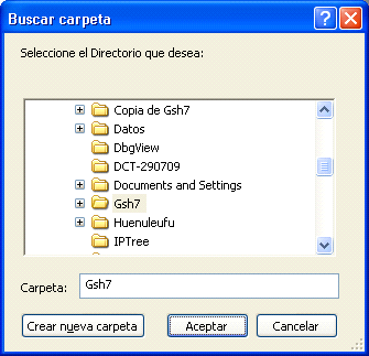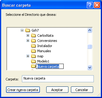 Luego botón Aceptar, y regresa a la pantalla anterior con la asignación de la Carpeta de trabajo generada recientemente al campo correspondiente.